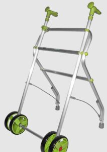 Es un andador básico, muy ligero (solamente algo más de 2,5 kilos de peso). Su plegado es fácil y el andador queda sostenido de pie, sin necesidad de apoyarlo en ningún sitio una vez plegado.